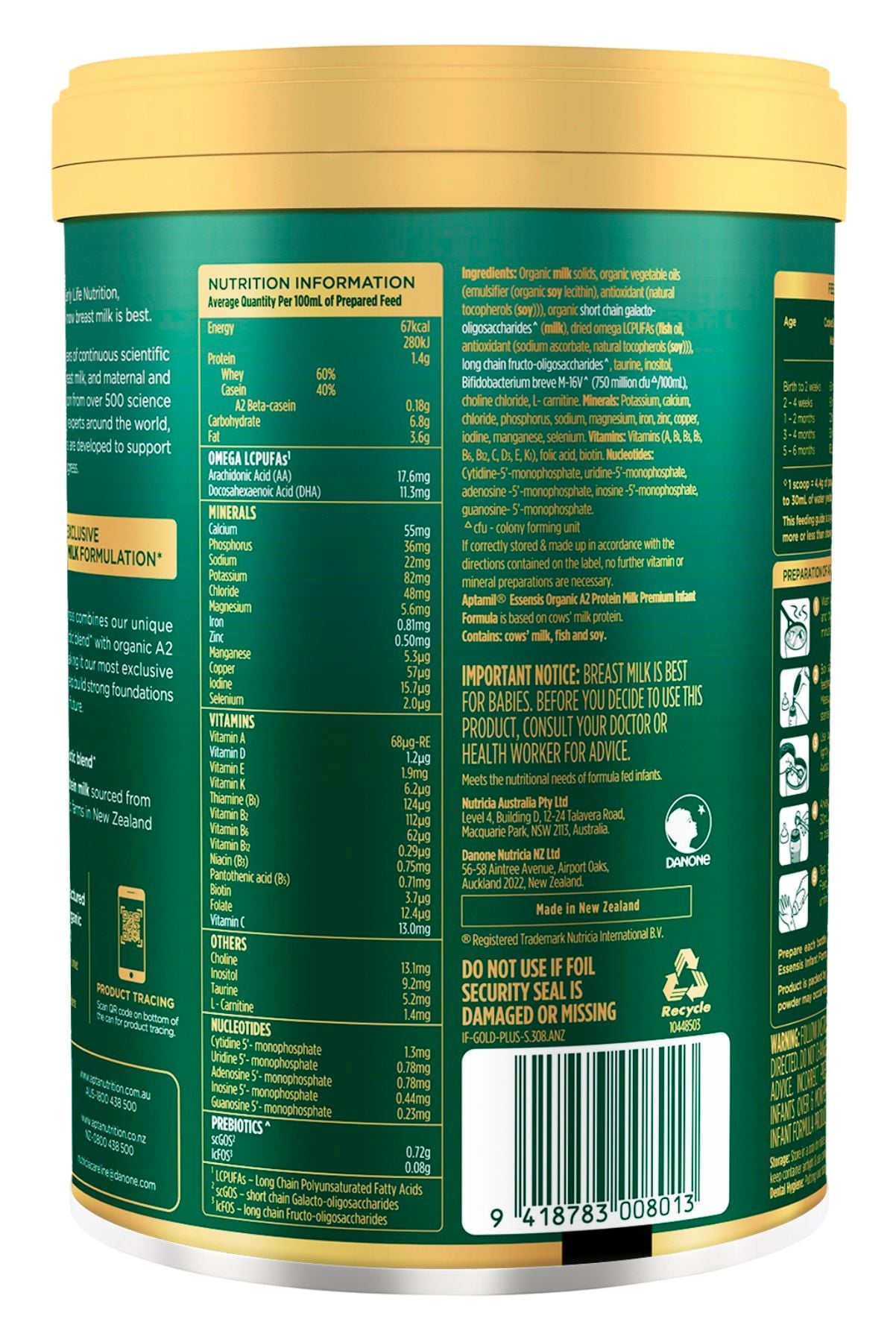 Aptamil Essensis Organic A2 Protein Milk 1 Premium Infant Formula From Birth to 6 Months 900g